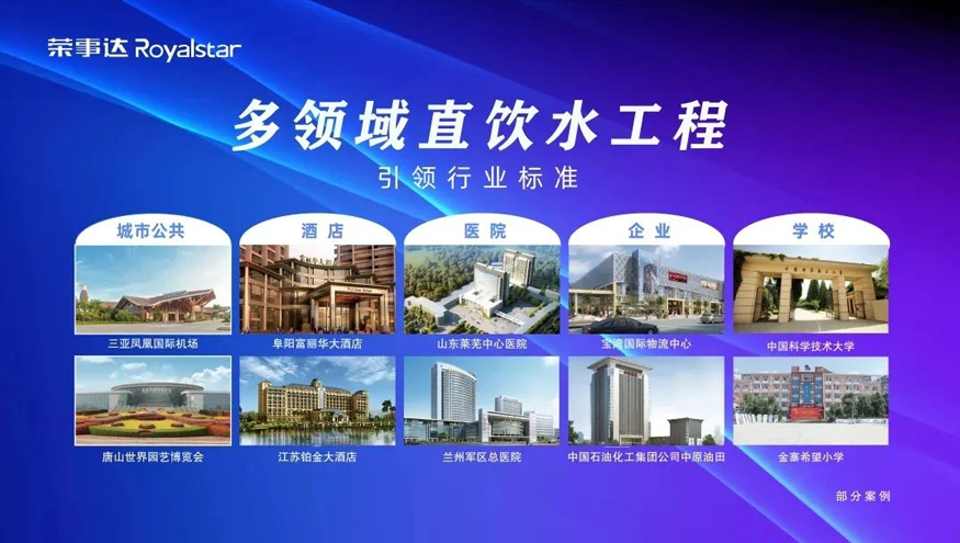 榮事達水工業公司作為凈水領域的佼佼者,已經擁有二十年的行業經驗。其產品和服務廣泛覆蓋于家庭、學校、企事業單位、城市公共等多種場所,為無數用戶提供了安全、健康、便捷的直飲水。